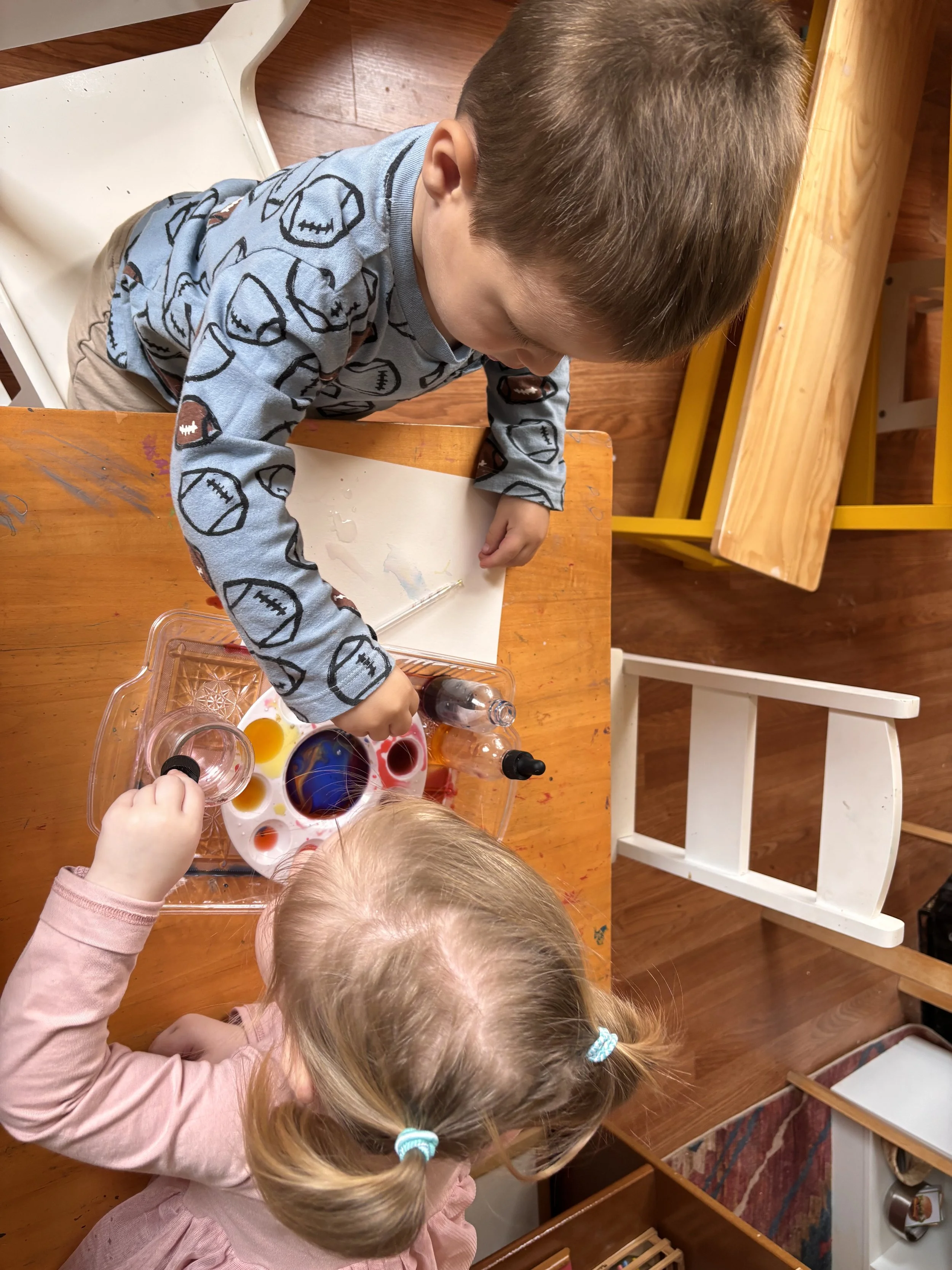 In our beautifully curated, peaceful classroom, you will find a vast collection of quality Montessori materials. What you will not find is a typical practical life area in the classroom - our exercises in coordination, independence, and concentration take place organically through a deep connection with art and culture - this is one area where Reggio Emilia practices really shine! Children have a wide variety of art materials and media from which to select their work in creating each day. We regularly embark on cooking projects that celebrate the diverse cultures worldwide and share meals together that engage the senses and foster connection within the community.